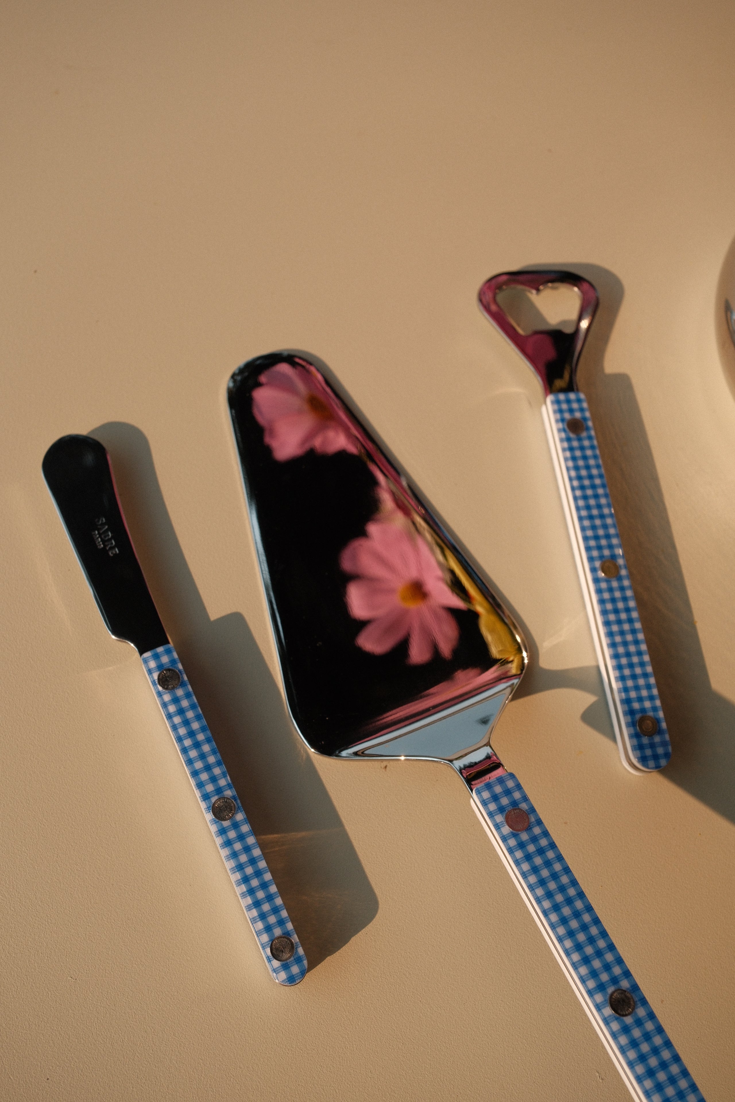 Each piece is handmade in Paris, France by Sabre. They have been handcrafting cutlery for over 30 years. Each piece has taken over 30 days to craft, made out of 18/10 stainless steel and carbon alloy blades all handmade in France. The acrylic handles are handcrafted in Italy, then assembled in Paris.