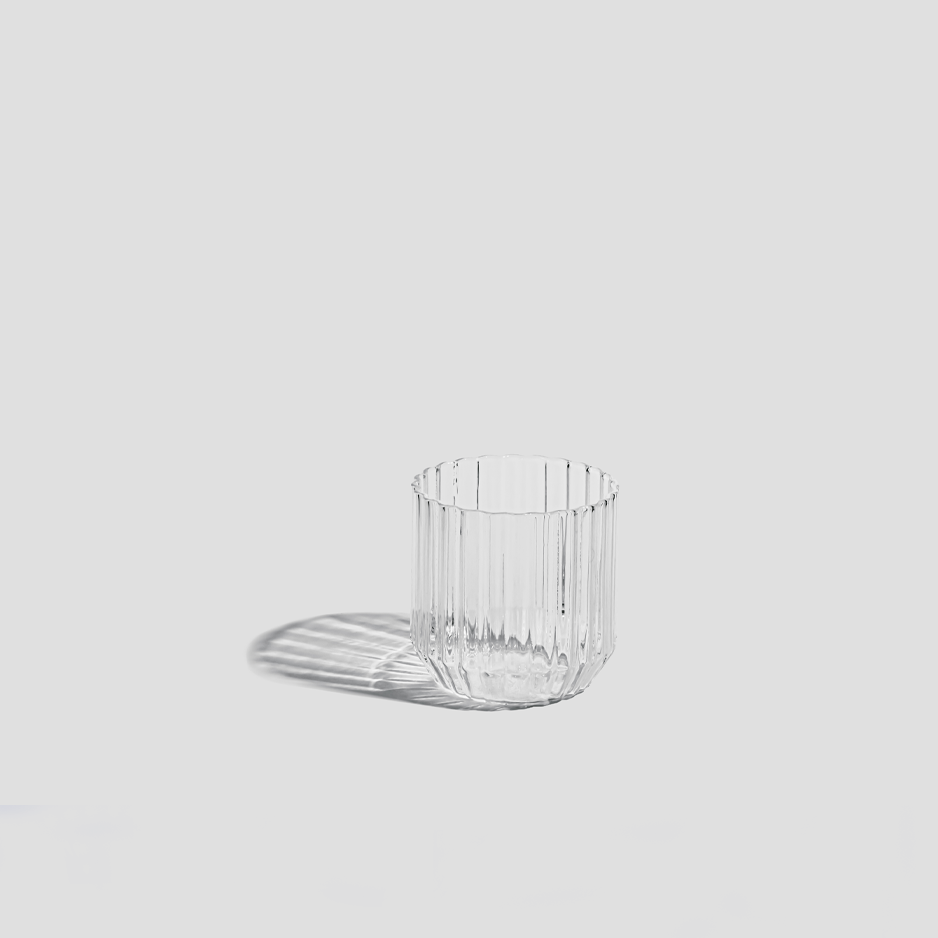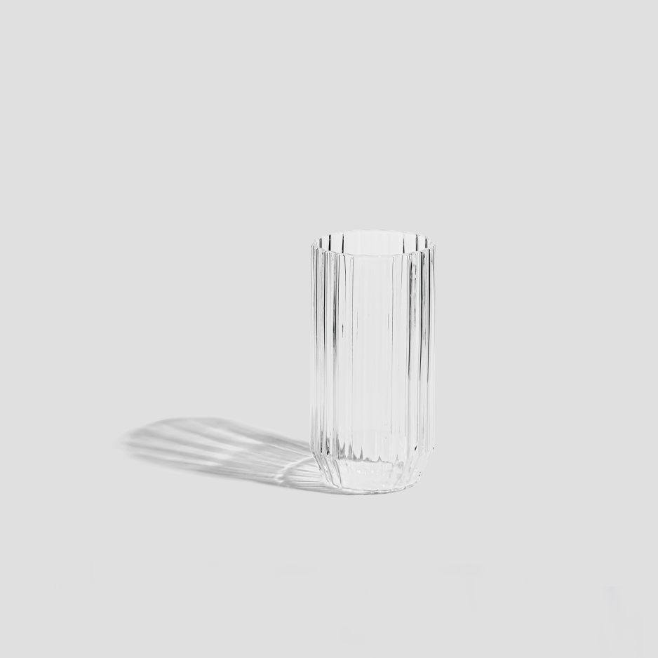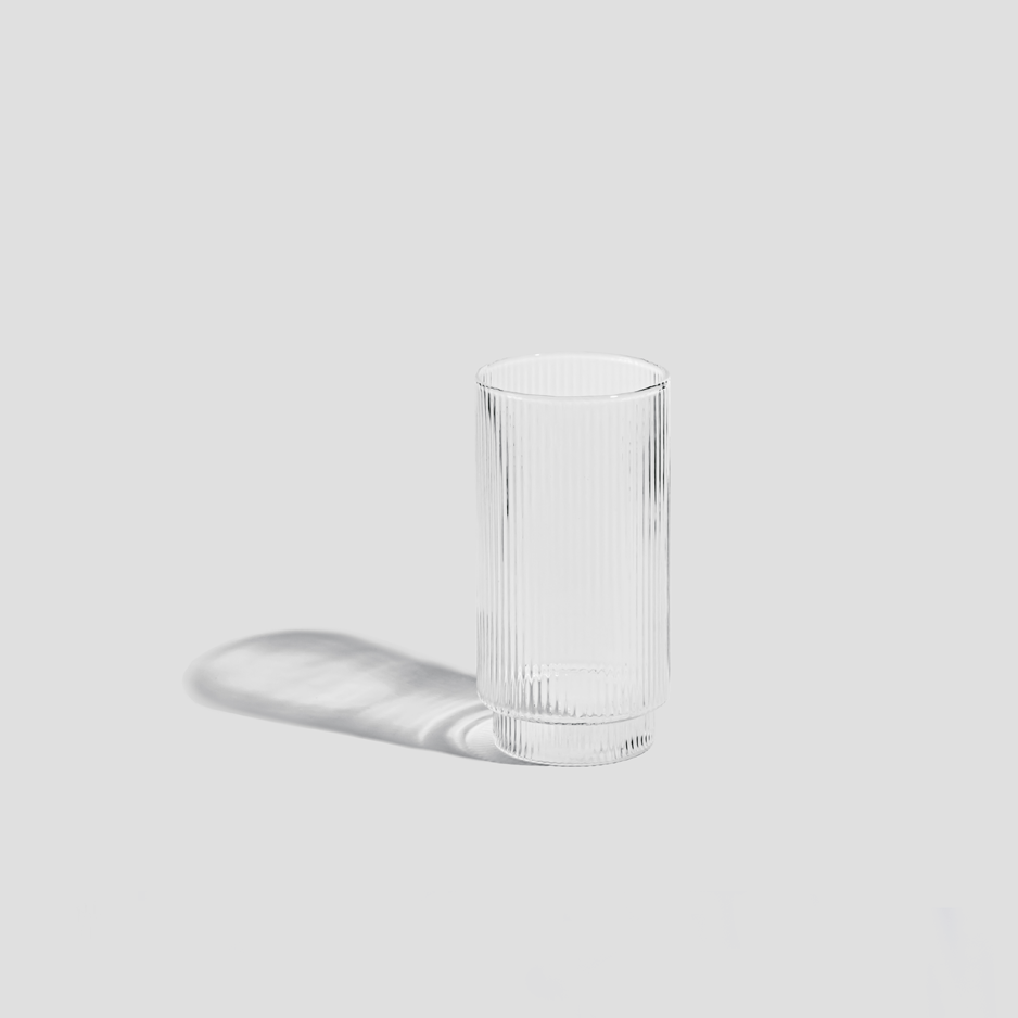 Each glass is hand blown and handcrafted. Glass is handblown into our custom moulds, while continuously rotating to distribute the glass evenly with the perfect composure of glass and air. Then each glass is placed to properly cool. Then a laser cuts all the ridges and then the base and top rim of the glass is sanded by hand. Finished with our signature "h" on the bottom of the glass.