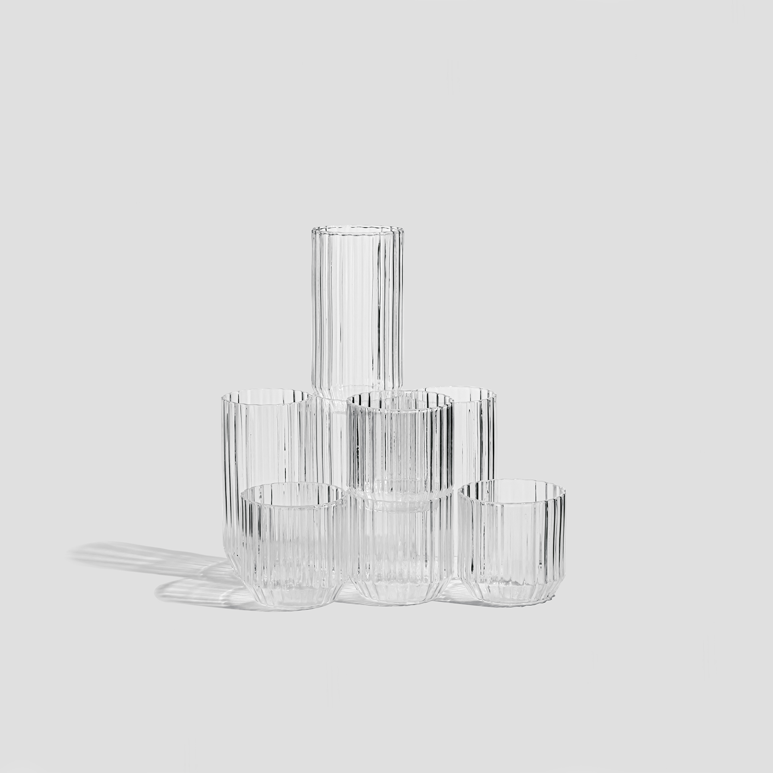 Our après glassware is your hosting best friend. Perfectly textured, stacks seamlessly on your open shelves or in your cupboards. Each glass is hand-blown and handcrafted, displaying a timeless design to be used for those many late nights with all your favorite people.