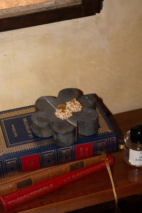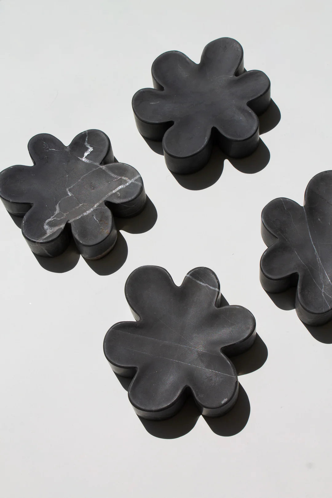 Using Italian Nero marble, each fleur catchall is made by hand in Queens, New York. Each curve is grinded down meticulously and finished in a honed texture. A deep black marble with striking white veining.