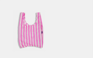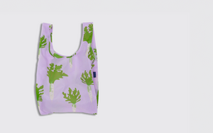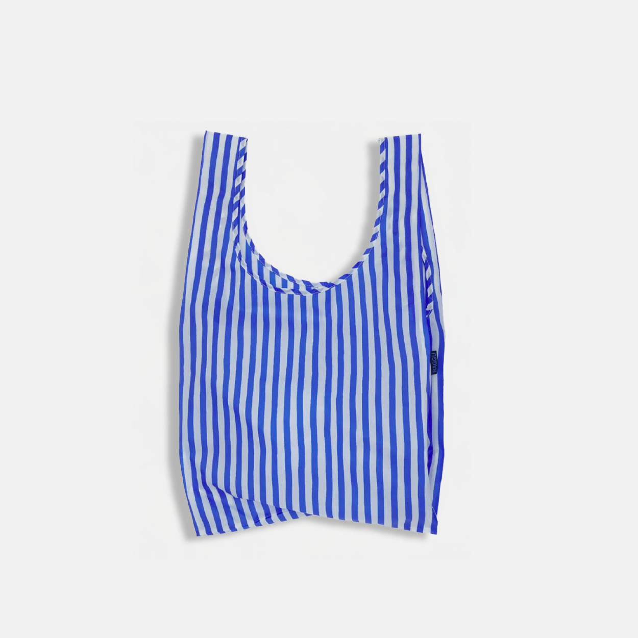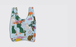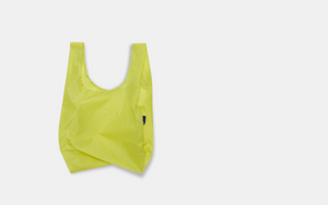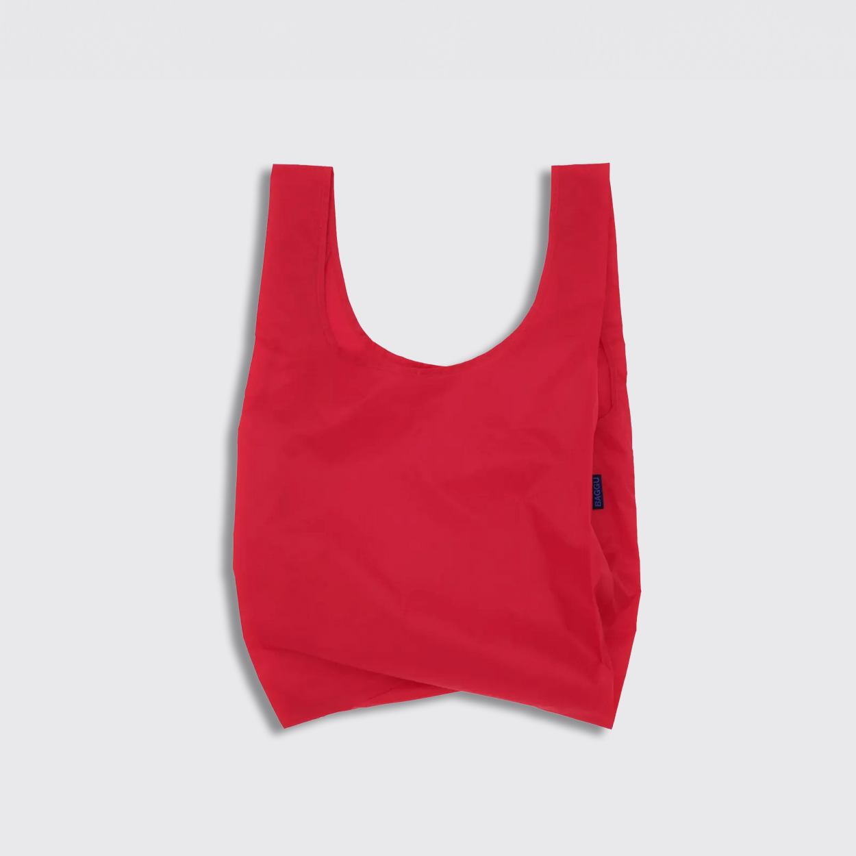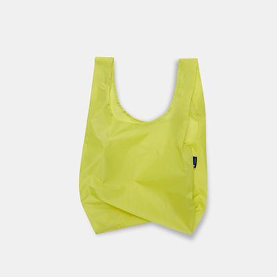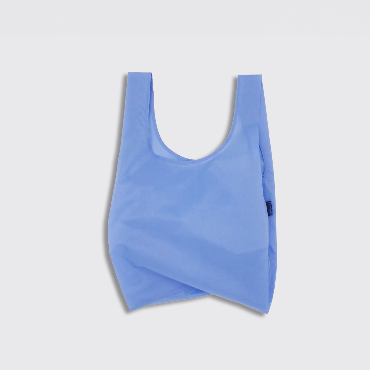 All of Baggu's standard bags are made of 100% recycled nylon filament yarn. This 100% recycled nylon yarn is produced from pre-consumer waste, which saves scrap material from being landfilled - meaning every Standard Baggu is now made entirely from nylon that would otherwise go to a landfill.