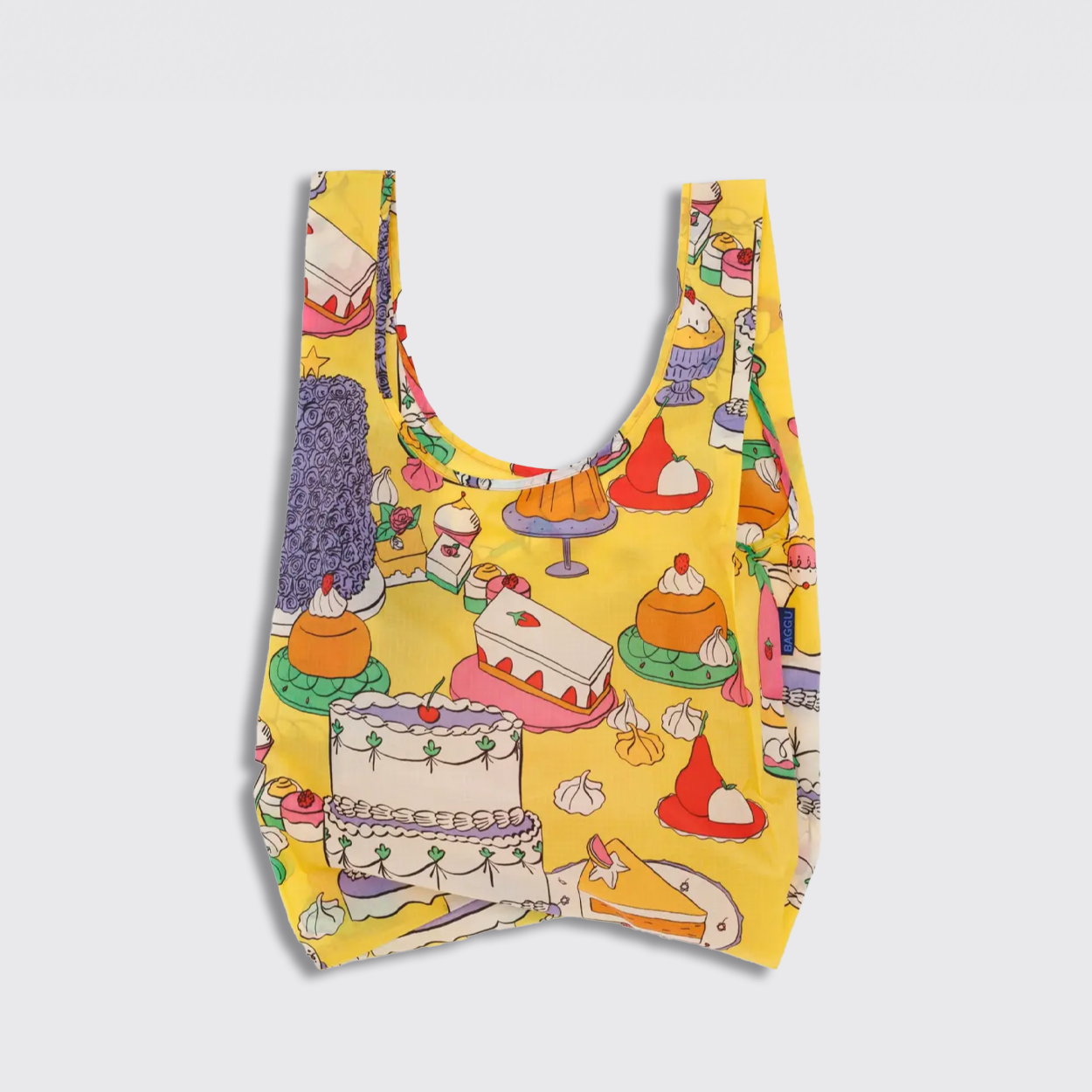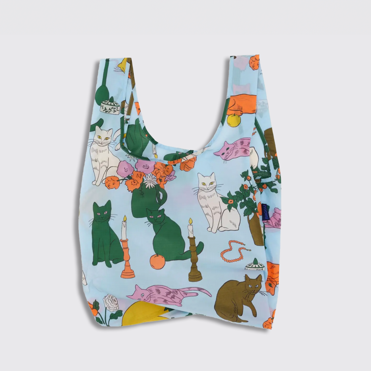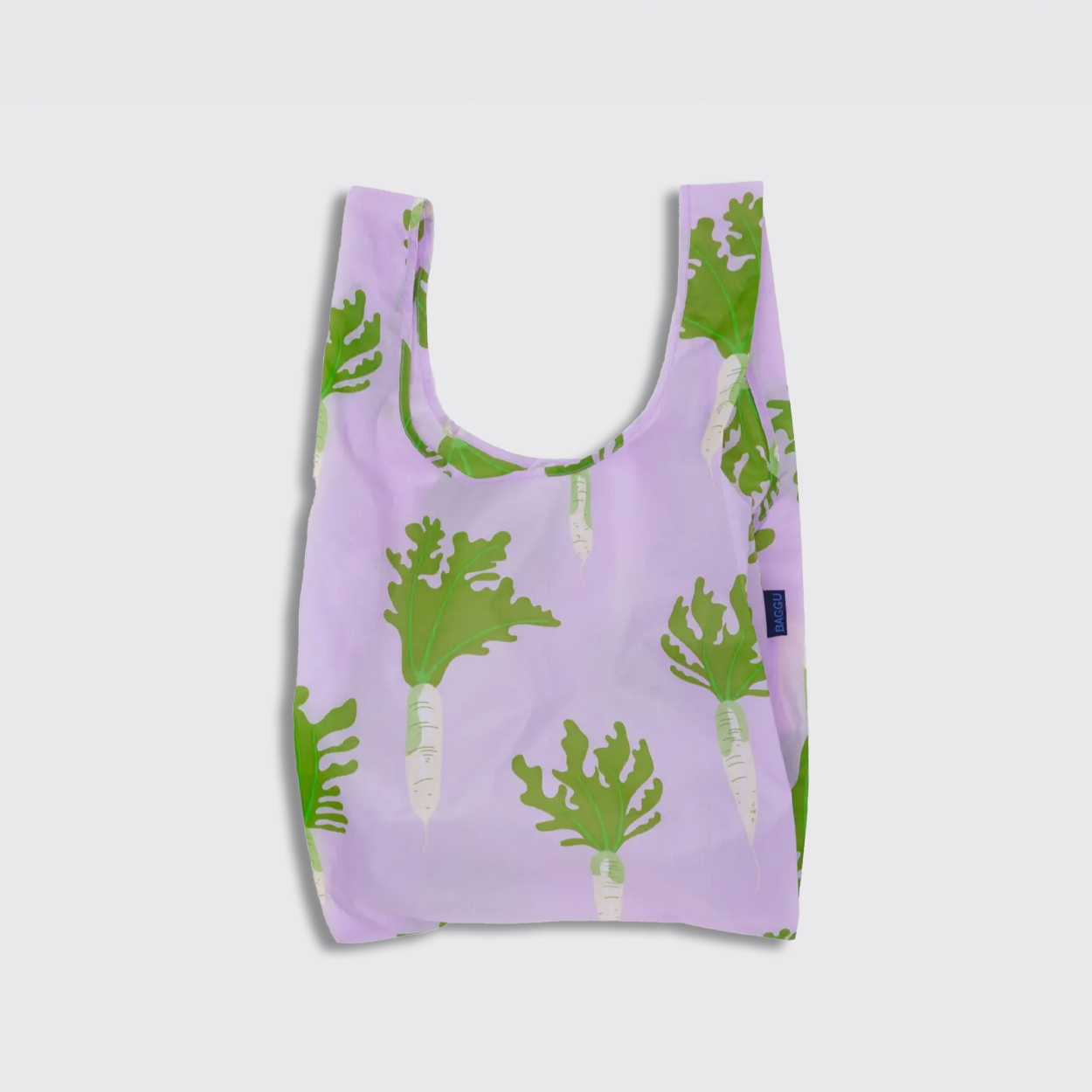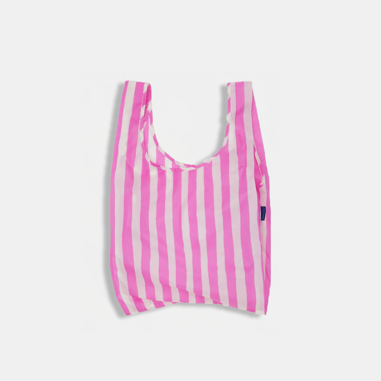 All of Baggu's standard bags are made of 100% recycled nylon filament yarn. This 100% recycled nylon yarn is produced from pre-consumer waste, which saves scrap material from being landfilled - meaning every Standard Baggu is now made entirely from nylon that would otherwise go to a landfill.